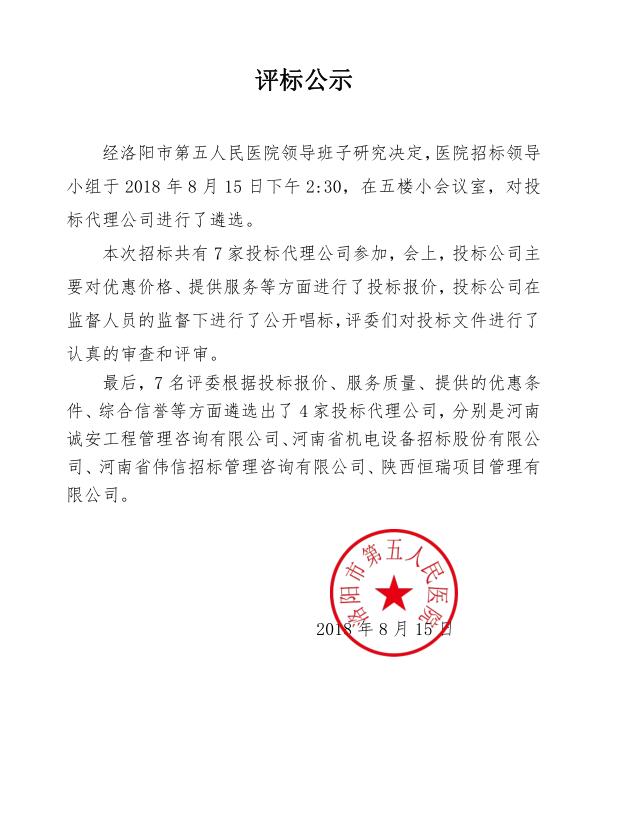 熱烈祝賀我公司成功入圍洛陽市第五人民醫(yī)院(河南科技大學(xué)第附屬醫(yī)院)遴選招標(biāo)代理機(jī)構(gòu)項(xiàng)目!